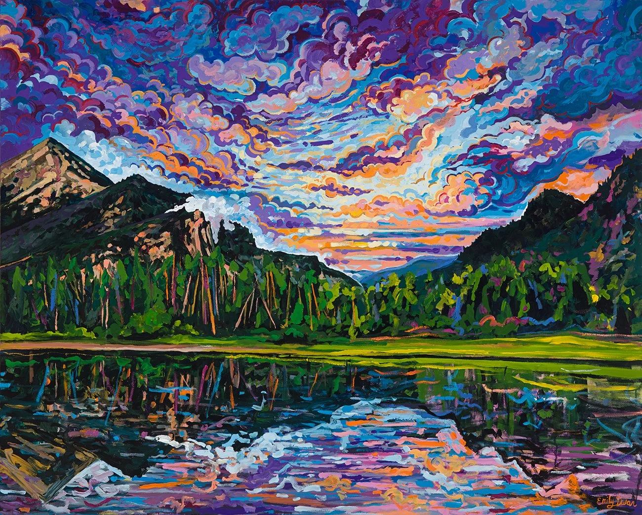 Fine art paper print of my original Red Rocks Sunset painting by local Morrison, Colorado artist, Emily Dwan.